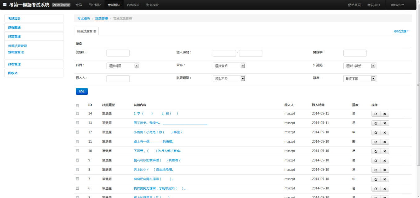 在線模擬考試,按客戶要求做成繁體版本,在默認基礎功能上,增加提問系統,頒獎臺等功能